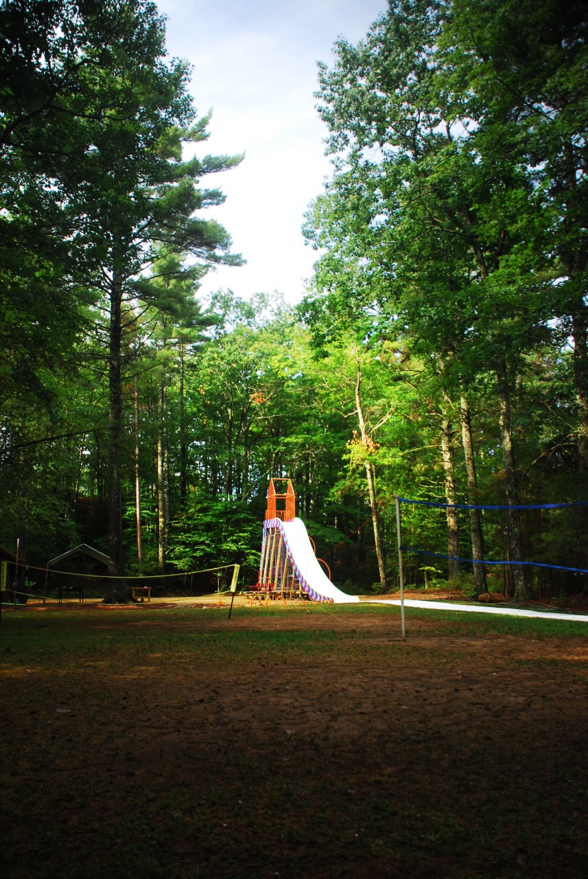 The slide’s height and presence on the site was a remarkable achievement for the campers to have built. The captivating water pyrotechnics that the campers produce through their cycling, and the incredible rush of climbing and sliding down their own structure into the lake, created unforgettable camp memories.