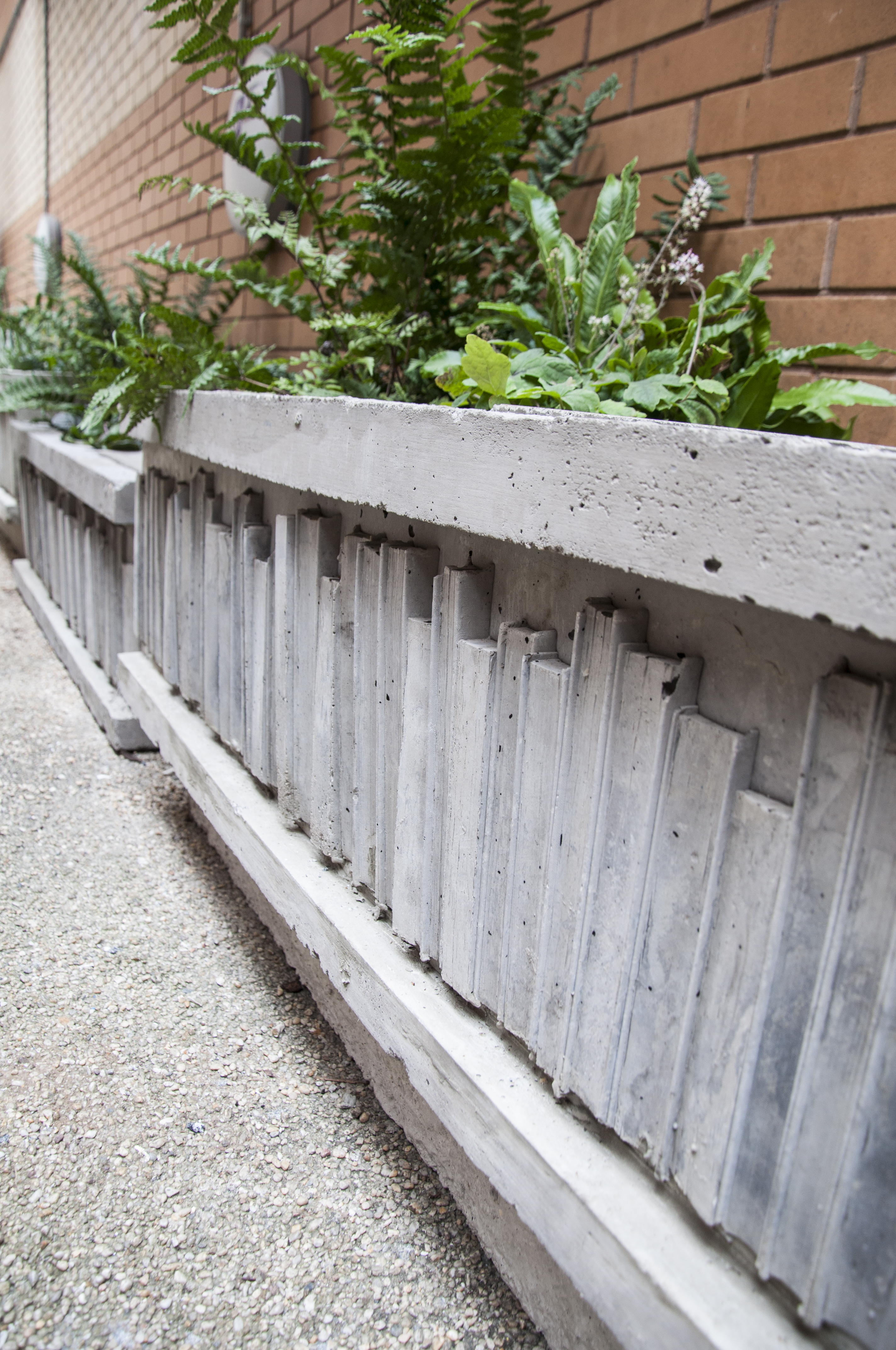 The alley is shared by Whitechapel Gallery, the homeless charity Providence Row, and the anarchist bookstore, Freedom Books. Supported by the GLA’s Mayor’s High Street Fund, Wayward brought together these organisations along with fifteen other local businesses and community groups along the High Street to create seating, planters and a digital library within the alley. Wayward developed workshops with the homeless clients and volunteers to build concrete planters cast from a library of books. Embedded in the project is a digital library of interviews, stories and exchanges that can only be accessed while occupying the alley. Whitechapel Gallery hosted two local knowledge exchanges with Wayward on libraries and urban growing to further the exchange and activate the space. The planters are cared for through Providence Row’s award-winning gardening initiative.